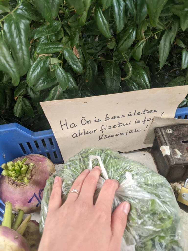 The town is famous for the so called Becsület Kassza, in English Honaray system, which is basicly a tradition the locals started. Locals place handmade or selfgrown items in the morning infront of their doors/homes, mark the items how much they cost and you just place the money in a box. With this basicly the people trust anyone who wants to buy something that they leave the rightfull amount. I found this very interseting so ofcourse we had to buy something aswell 🙂 You dont see this too often anywhere else that people have faiht in humanity.