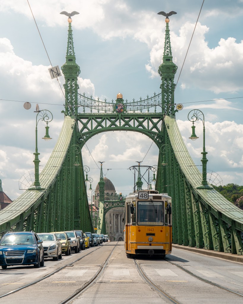 2, Make a brief stop at the Liberty Bridge – The Iconic Green bridge of the Danube with unique detailed architecture to observe and the view of the yellow trams passing from Pest to Buda.